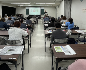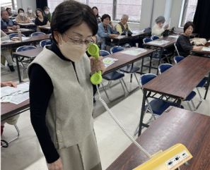 鹿児島支部(支部長:岩重 俊一)は、令和7年11月11日(火)に鹿児島市役所の「鹿児島市消費生活センター」より、災害時における災害用伝言ダイヤル等についての教室を受け持っていただきたいとの要請を受け、90分で当財団の活動内容や公衆電話の設置、特設公衆電話の設置場所等を含め災害用伝言ダイヤルの概略、使用方法の説明や体験を行うとともに災害時連絡方法のてびき贈呈等を行い171周知活動を実施しました。参加者からのアンケート報告では大変勉強になった。知らないこともあり有意義であったとのお礼の文章が多かった。 鹿児島市消費生活センターの落様からは、「ご寄贈いただいた多くのマスクなどは、災害対策の一環として大事に使わせていただきます。ありがとうございます。」と感謝の言葉をいただきました。