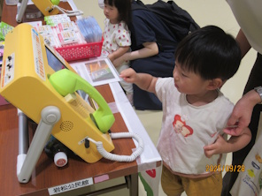 当会は、地域の安全・安心への貢献活動として、災害用伝言ダイヤル171の使い方・公衆電話体験をしていただきました。また、171体験をいただくと「わくわく消しゴムBOX」より人気を集めました。災害が起こった際に最も安全・安心な行動をとっていただくため、家族間の連絡方法について各家庭において伝言ダイヤルを使って安否確認の重要性を感じていただき大変有意義な活動でした。