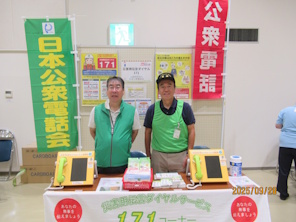 愛媛支部では、9月28日(日)宇和島NPOセンター主催の「交通安全フェア&うわじま防災BOX~クルマとくらしの”もしも”にそなえる1日」で災害用伝言ダイヤル171の周知啓発活動・公衆電話教室を実施しました。当日は、交通安全に関する意識向上や啓発、地域の防災・安全意識を高めることを目的に、多くの家族連れが来場され地震や大雨などの災害に備え、交通安全の重要性や地域の防災について、さまざまな知識などを学んでいただきました。