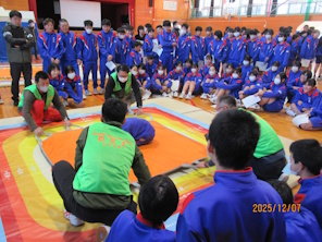 愛媛支部では、12月7日(日)に新居浜市立川東中学校で「地域・学校・生徒協働防災訓練」として、川東校区の防災訓練に参加しました。当会は、愛媛支部星加副理事に参加をいただき、災害用伝言ダイヤル171の体験学習を実施しました。