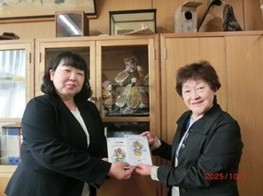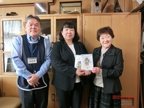 長野支部では10月7日、長野県中野市の中野市立高丘小学校の高学年児童向けに「こども手帳」と「公衆電話と171」ポケットマニュアルをセットで贈呈いたしました。校長先生からは、「今の社会的な取り組みが網羅された大変良い教材で、子どもたちとしっかり使っていきたいと思います」と感謝の言葉をいただきました。また校長先生には、防災学習の一つとして、県内小学校で実施の公衆電話や災害用伝言ダイヤル171の体験教室についても、ご紹介をさせていただきました。更に、校長先生と教頭先生には、指定避難所として設置されている「災害時用公衆電話」についても、一緒にご確認をいただくことができました。