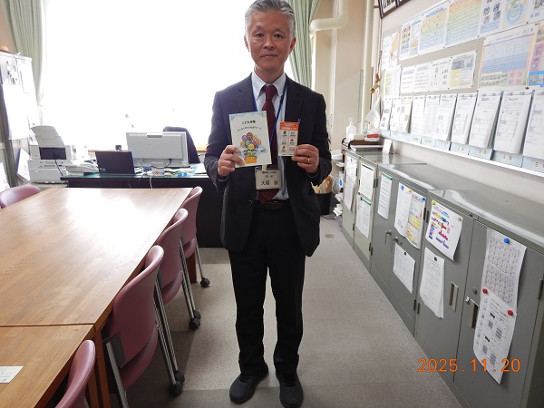 群馬支部では、11月19日~21日の3日間、藤岡市立小学校11校(藤岡第一小、藤岡第二小、神流小、小野小、美土里小、美九里東小、美九里西小、平井小、日野小、鬼石北小、鬼石小)の各校長先生に「こども手帳」と「171こどもマニュアル」を贈呈しました。本施策は群馬支部蟹川副理事のご紹介により、平成28年から継続している施策です。藤岡市教育委員会では文科省の「学校安全総合支援事業」に応募され、地域と連携した防災教育の推進を計画されており、各校長先生から「安心・安全」の大切さを伝えるために寄贈された冊子を活用させていただくとの感謝の言葉をいただきました。日本公衆電話会からは、生徒さんの安心・安全につながる啓発活動を紹介しつつ、防災教育を推進する中で、日本公衆電話会の活動が活かせる機会がある場合に遠慮無く相談くださるようご提案を行いました。