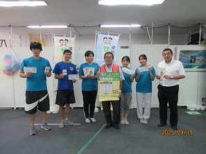 大阪支部では、令和7年9月19日(金)に桑田副支部長より河内長野市の「運動療育 サトスポキッズ」様に「こども手帳」ならびに、「災害用伝言ダイヤルサービス(171)」周知・PR用の「マスク」「ティッシュ」を贈呈しました。「運動療育 サトスポキッズ」様とは、本年4月に出展させていただいた「防犯防災総合展2025」を通じて関係構築が図れましたが、今後は、河内長野地域コミュニティーの強化等に向けた各種取り組み等において更なる連携をさせていただく予定です。