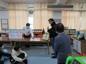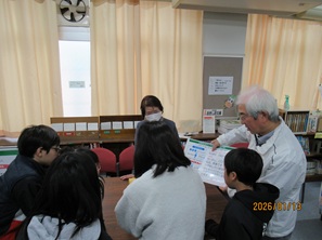 兵庫支部では、令和8年1月13日(火)に神戸市立西落合小学校のジュニア防災学習に参加して「171・公衆電話教室」を実施しました。この防災学習は須磨消防署及び北須磨出張所、須磨消防団、西落合防災福祉コミュニティの方々が協力して毎年小学5年生を対象に防災体験学習を実施しておられます。5年生2クラスが3グループに分かれて①地震体験車・ふっQ水栓、②AED訓練、そして③災害用伝言ダイヤル171・公衆電話の使い方をローテーションで体験学習されました。災害用伝言ダイヤル171の使い方では消防署員と防災福祉コミュニテイーの方に録音役・再生役になってもらいアドリブで楽しいお手本を見せていただき大変盛り上げていただきました。生徒の皆さんは楽しみながらも熱心に取り組んでいました。なお、防災学習開始前に池田校長先生に「こども手帳」の贈呈と災害用伝言ダイヤル171のポスターの掲示をお願いしました。
