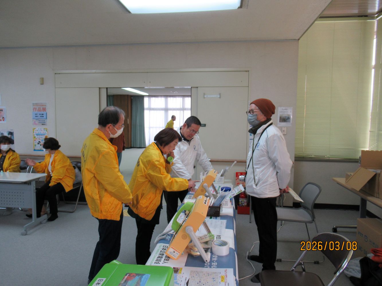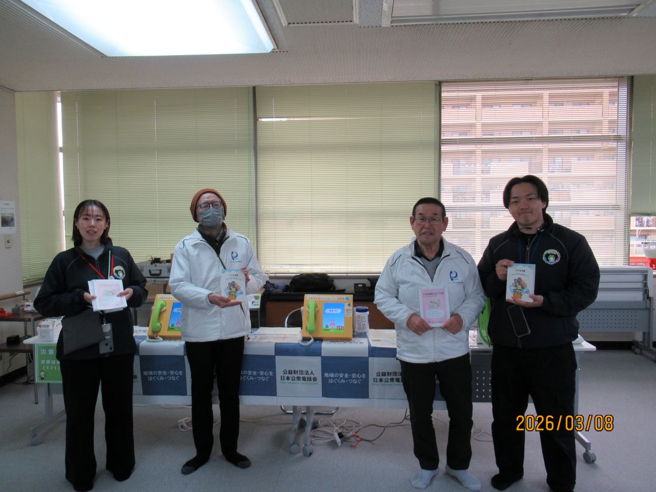 あわせて、児童クラブにこども手帳・災害時連絡方法のてびきを贈呈するとともに、福祉センターに設置の災害時用公衆電話の点検並も行いました。