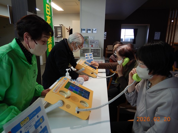 令和8年2月20日(金)、リハプラスディ倉賀野(訪問介護ステーション)において、群馬支部で「171体験会」を実施しました。今回の企画では、「体験」を通しての防災意識向上を目的に、会場での実体験を帰宅後に家族と共有いただくことに重点をおきました。群馬支部役員(吉田支部長、小金沢副支部長、佐藤理事、池田監事)4名と事務局1名、合計5名の体制でスマートホン2台、171体験機3台を使用し実際の171サービスに録音いただき、帰宅後に家族皆さんで聞いていただくプログラムを実施しました。171サービスの簡単な説明後、参加者の皆さんが、スマホや体験機を使い171サービスに録音、再生を体験されました。参加者からは「171サービスはアナウンス通りに操作できるので意外と簡単に操作できた」「一度でも体験したらもしもの時に戸惑わないと思った」などの感想をいただきました。参加者からは「家族の安否を確認する仕組みの大切さを実感し、貴重な体験ができ感謝している」という声もいただきました。