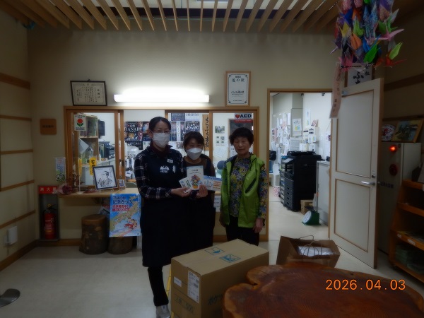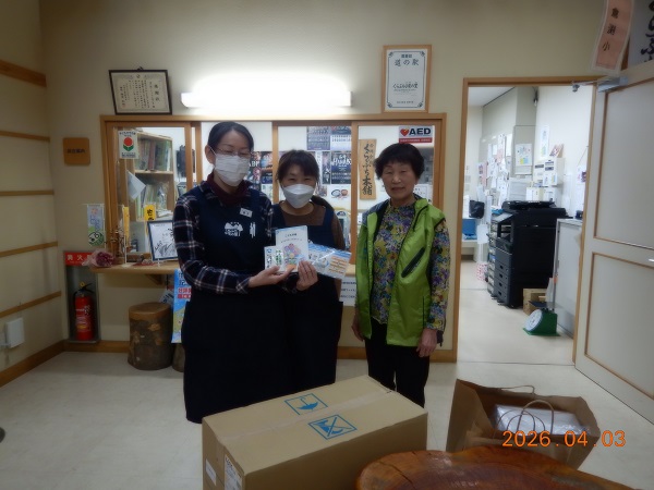 群馬支部では、4月3日(水)、「道の駅くらぶち小栗の里」への171サービス啓発ツール(マスク、ティッシュ)とこども手帳の配置を実施しました。本施策は池田監事のご紹介で3年前から開始しました。施設側では、多くの来場者が手に取っていただけるように事務所前の休憩スペースに、きれいなバスケットに入れてマスクやティッシュを配置いただいており、「配備したツールは、すぐになくなってしまい、お客様には好評です。」との言葉もいただいています。