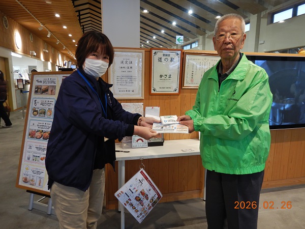 茨城支部では、2月26日(木)、「道の駅かさま」への171サービス啓発ツール(マスク、ティッシュ)を贈呈しました。当日、永井茨城支部長より施設へ、ツールの贈呈をさせていただきました。「道の駅かさま」は、笠間の魅力により暮らしと観光を育む「かさま彩の里」をコンセプトとし、令和3年9月にオープンしました。「道の駅かさま」では、災害時の防災拠点となることも意識され、防災倉庫の設置や電源供給を意識した電源車専用スペースの確保等も実施されています。茨城支部は地域の住民や観光で訪れる方々が集まり、交流人口が増える拠点に171サービス啓発ツール等を配備することで幅広い年齢層の方々にサービスの周知を継続的に実施して参ります。