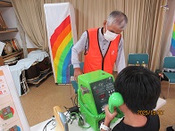 兵庫支部では、令和7年9月27日(土)に社会福祉法人 愛和会 中筋児童館で児童等約25名に「171・公衆電話教室」を実施しました。また実施前には美濃部館長に「こども手帳」と「171周知用ツール」を贈呈しました。当日は中学生の参加による「お菓子でサラダ体験・非常トイレ体験」など防災時に役立つ取り組みも行っておられました。「171・公衆電話教室」には児童の保護者や中学生も参加され、児童と一緒になって公衆電話機のかけ方や災害用伝言ダイヤル171の録音・再生の体験をしていただきました。最後に「もしもの時に連絡出来る電話番号を家族で決めておいてくださいね」とお願いしました。