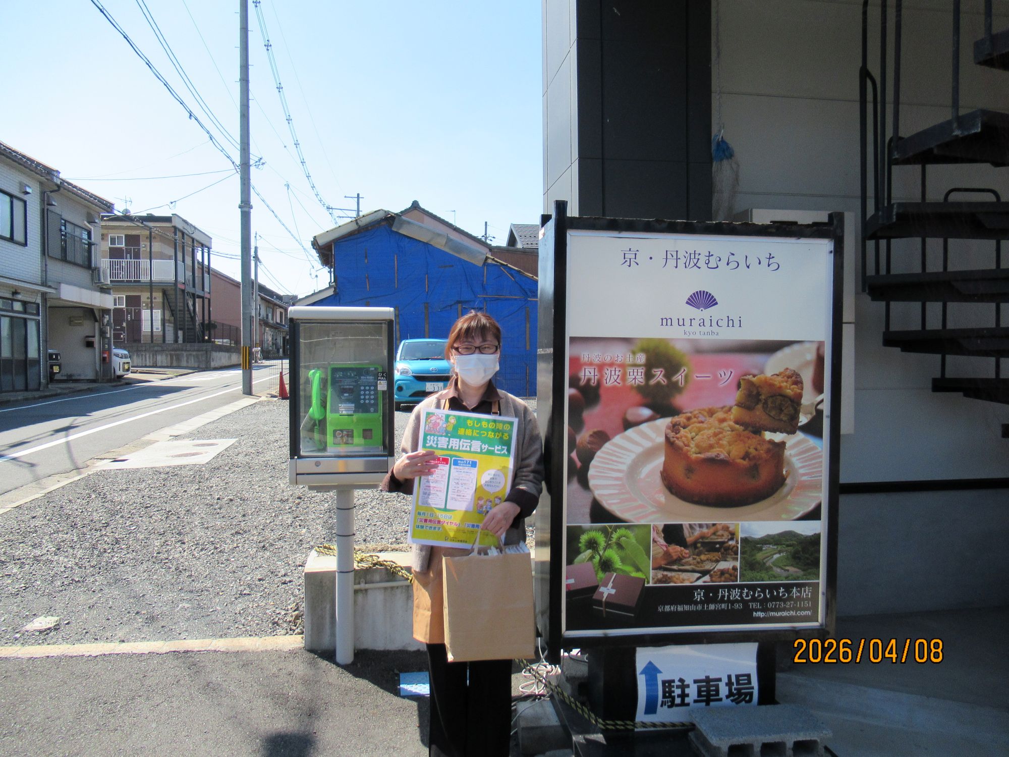 北近畿の観光情報発信基地『さんの丸』における171PR 2026/04/08 2026年 災害用伝言ダイヤル171等周知活動レポート 関西 京都支部では、4月8日(水)に北近畿の観光情報発信基地『さんの丸』に171周知用ポスターの掲示、並びに福知山に訪れる観光客へ171周知ツールを配布していただく取り組みを実施しました。