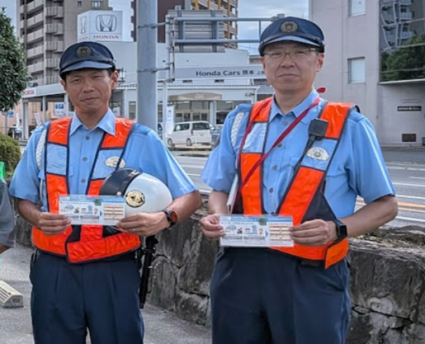 熊本支部(支部長:村上 正誠)は、令和7年9月29日(月)に、「思いやり・ゆずりあい」キャンペーン]の主催者の熊本中央警察署交通第一課に対し、地域の安心・安全の取り組みの一環として、災害伝言ダイヤル171周知活動を実施しました。 「熊本中央警察署交通第一課」に対し、「災害用伝言ダイヤル(171)」の利用方法を解説した「災害時連絡方法のてびき」ならびにマスク、ティッシュを寄贈しました。熊本中央警察署交通第一課の河田課長からは、「ご寄贈いただいた多くのマスクなどは、災害対策の一環として大事に使わせていただきます。ありがとうございます。」と感謝の言葉をいただきました。