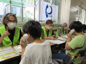 東京支部(東京東地区)では、9月26日(金)、文京区立林町小学校からの依頼を受け、公衆電話と171の体験教室を開催しました。当校では4年生を対象に1泊2日の防災宿泊(避難)訓練を実施しており、その一環として公衆電話のかけ方と171の使い方を、児童約120名に体験していただきました。これまで公衆電話に触れたことがない、あるいは公衆電話そのものを知らない児童がほとんどで、171や公衆電話の使い方、またその重要性について認知啓発を図ることができました。当校は避難所に指定されていることから災害時用特設公衆電話を利用しました。また、この体験教室の開催に先立ち、事前学習を実施していただくため、「171利用マニュアル」を配付しまし予習をお願いしました。
