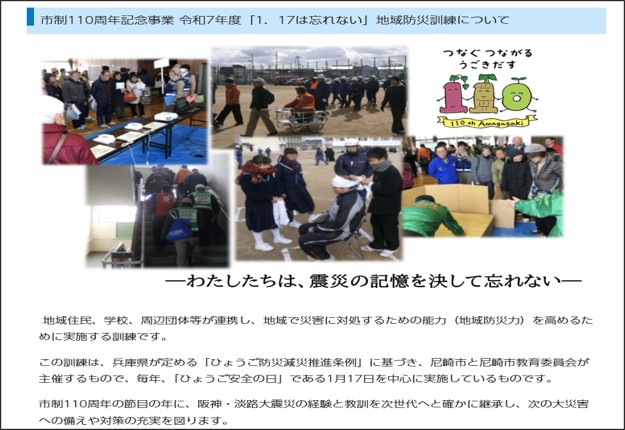 尼崎市制110周年記念事業「1.17は忘れない」地域防災訓練に参画 2026/01/16 2026年 公衆電話教室等の活動レポート 地域の安全・安心への取り組み 災害用伝言ダイヤル171等周知活動レポート 関西 兵庫支部では、1月16日(金)尼崎市 市制110周年記念事業 令和7年度「1.17は忘れない」地域防災訓練に171体験機を貸出し、地域の皆様に171の利用を体験いたきました。 兵庫支部では、今後も防災関係機関等への171体験機の貸出しの拡大を推進していきます。