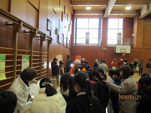 兵庫支部では、令和8年1月21日(水)に宝塚市立宝塚小学校で開催された合同防災訓練に参加いたしました。当防災訓練には、宝塚小学校・宝塚幼稚園、川面地区自主防災会・宝塚小学校区まちづくり協議会、そして宝塚市・宝塚西消防署・宝塚警察署など沢山の方々の協力により開催されました。グランドでは消防署による放水訓練を行うとともに、白バイ・パトカー・救急車・消防車の見学などを実施。体育館ではソフト担架の取り扱い・心肺蘇生&人工呼吸、AEDの取り扱い、そして今回初めて参加した当会は、小学4年生約160名(6グループによりローテーションで実施)に災害用伝言ダイヤル171・公衆電話の使い方について実施しました。公衆電話(緊急通報含む)の使い方や171訓練機による伝言の録音について説明をしっかり聞きながら一生懸命取り組んでおられました。生徒の皆さんには「”もしもの時”のために連絡する電話番号を家族で決めて覚えておいて下さい」とお願いしました。また、小学校の先生及び自治会の代表者の方の立会いのもと災害時用公衆電話の点検を行いました。