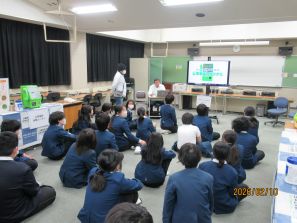 2月10日 奈良支部では桜井市立桜井南小学校の5年生49名を対象に「公衆電話教室」を開催しました。当日のスケジュールは1概要説明、2ビデオ学習、3デモ機を活用した体験学習、4質疑応答の4部構成で実施しました。また、171Cuteを使って「災害用伝言ダイヤルサービス(171)」についても生徒全員が録音・再生を体験し、「いざと言うときに利用する家や家族の携帯番号を事前に決めておく」というルールを再周知して終えることができました。