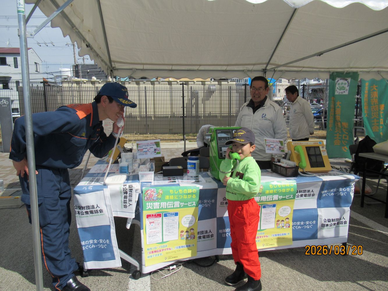 大阪支部では、3月20日(金・祝)、堺市総合防災センターが開催する『こども防災 春まつり』に大阪府防災士会と連携し参加。当日は5,882人の方が来場され、当会では、171・公衆電話機のデモ機による利用体験を開催しました。