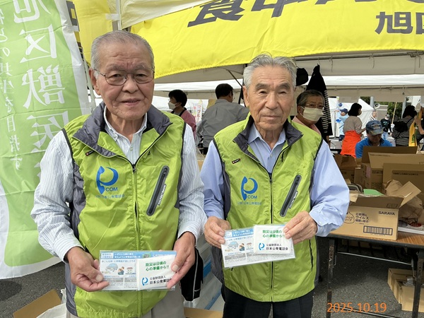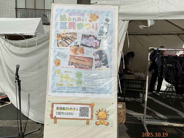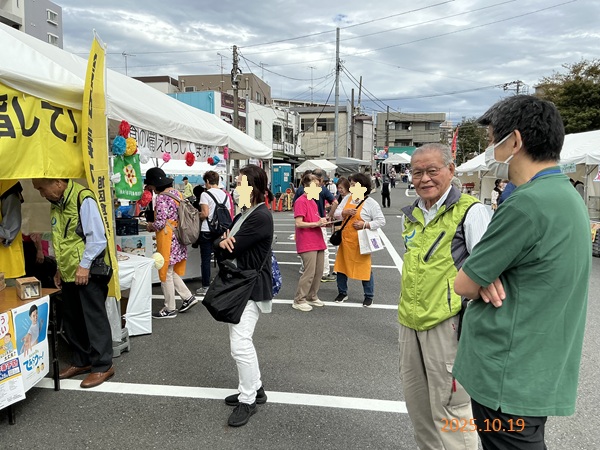 神奈川支部では、10月19日(日)旭ふれあい区民まつり(横浜市)にて、旭区食品衛生協会と共同して中野理事および後藤賛助会員は、地域の安全・安心への貢献活動として災害用伝言ダイヤル171の周知を実施しました。本イベントは旭区の一大イベントとして毎年開催されるもので、来場者が賑わう中、大勢の方に171周知をすることが出来ました。