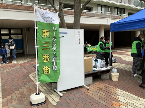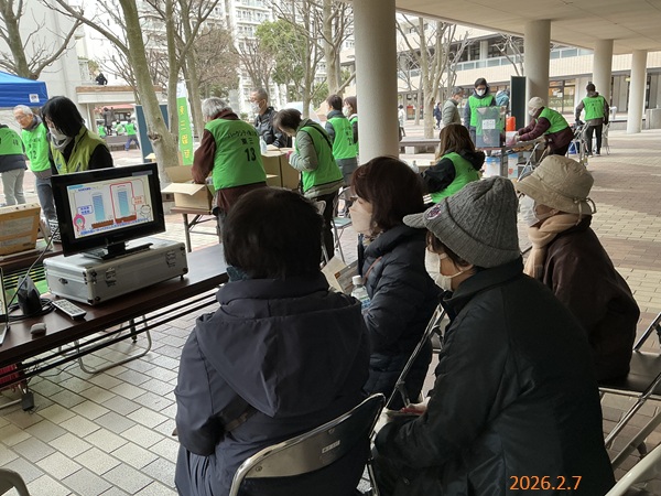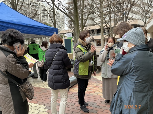 神奈川支部では2月7日(土)、パークシティ新川崎防災訓練(川崎市)において、災害用伝言ダイヤル171のかけ方を周知しました。当会ブースでは、参加者のスマホによる171の実体験や防災ビデオ鑑賞などをしていただきました。児童の参加者には171体験機により模擬体験をしていただきました。小雪舞い落ちる大変厳しい寒さのなかではありましたが、参加者の方々に防災意識向上のための周知を行うことが出来ました。参加者からは「実際に体験してみて良かった。」「体験日には家族で体験してみる。」等のお言葉もいただきました。