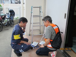 大阪支部では、令和7年6月22日(日)に吹田市山二地区主催の「防災ひろば」に参加しました。当日は、桑田副支部長、湯浅幹事の2名が参加しました。当日は、ご参加をいただいたたくさんの地区のみなさまに、「災害用伝言ダイヤルサービス(171)」訓練機を用いた大規模災害時等を想定した『安否確認』や実際の公衆電話を用いた硬貨やテレホンカードを利用した電話の「かけ方」や「緊急通報(110番・119番)」のかけ方に取り組んでいただきました。最後に会場となった体育館に設置されている「災害用公衆電話」の開設・点検サポートを実施し終了いたしました。