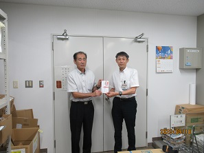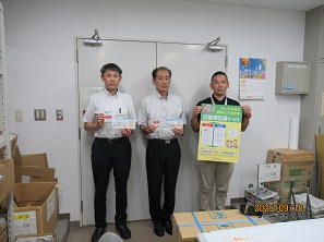 大津市 総務部 危機・防災対策課様に「災害用伝言ダイヤルサービス(171)」PR用「マスク」「ティッシュ」を贈呈しました。