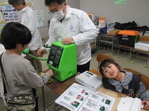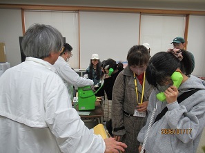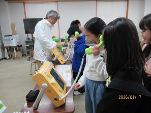 兵庫支部では、令和8年1月17日(土)神戸市立だいち小学校で「だいちdeフェスティバル」に参加して、災害用伝言ダイヤル171のかけ方(171訓練機による体験)と公衆電話のかけ方(緊急通報のかけ方)について学んでいただきました。このイベントは、地域のつながりを深めるための取り組みとしてここ数年行われています。だいち小学校・太田中学校をはじめ、各自治体、周辺の自治会の方々など多数参加されています。沢山のブースが設置されていましたが、当会はスタンプラリー形式で廻る最終ブースであることから参加者のほぼ全員の方々に伝言ダイヤル171の体験や公衆電話のかけ方について操作体験などしていただくことが出来たと思います。
