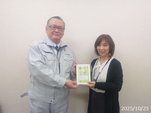贈呈を受けた石田さとみ事務局長様より「このたびは、町民の安全意識の向上に役立つ冊子をご提供いただきありがとうございます。民生委員の皆様に配布するなど有効に活用させていただきます。」とのコメントをいただきました。