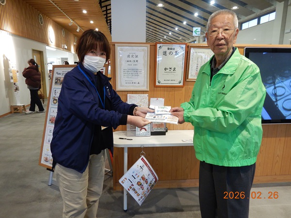 「道の駅かさま」への171サービス啓発ツール(マスク、ティッシュ)を贈呈