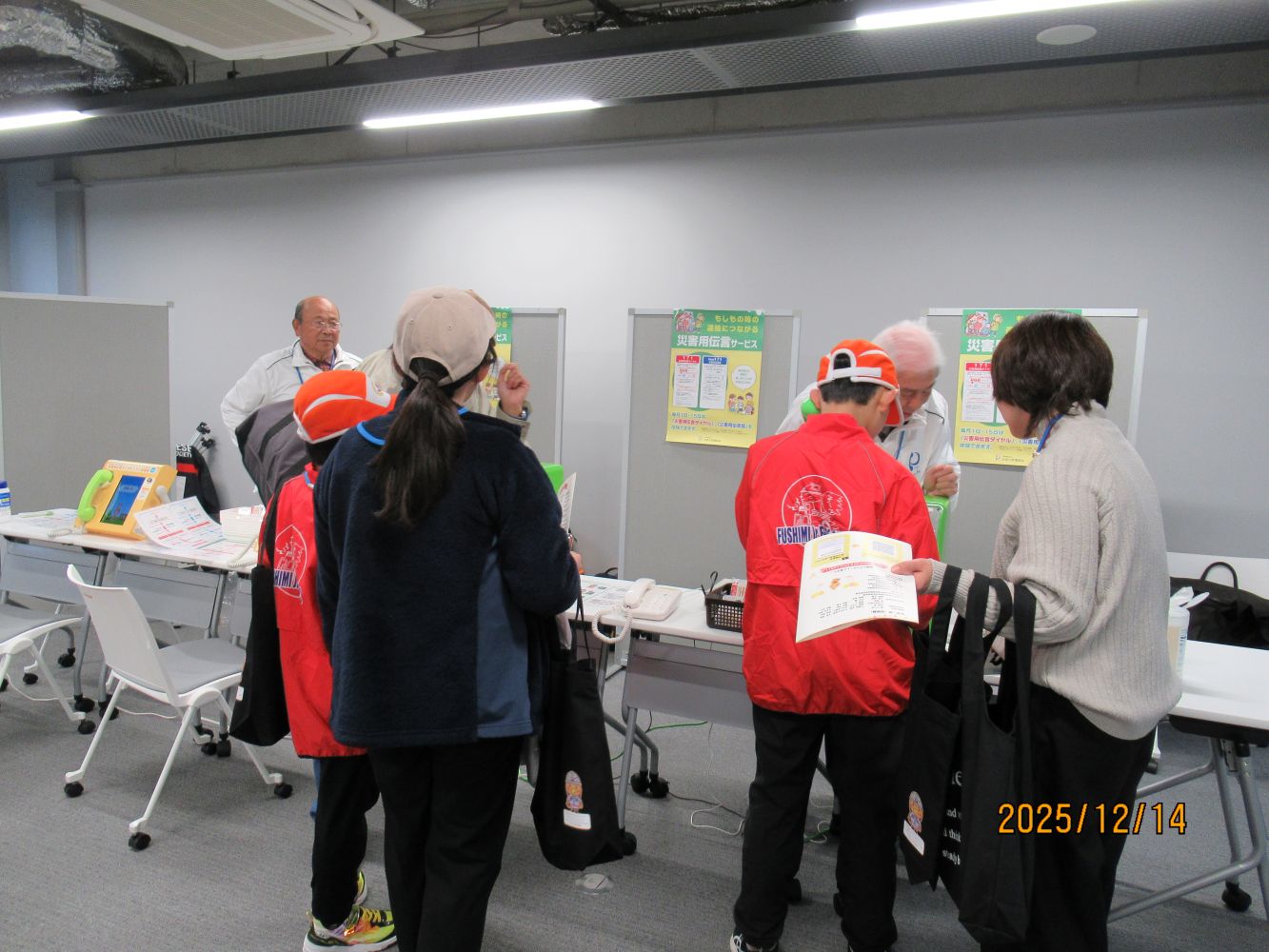 京都支部では、12月14日(日)、「見て!聞いて!学ぶ!」京都市伏見区総合防災訓練(in龍谷大学 成就館)に参加しました。当日は、多くの伏見区民が総合防災訓練に参加され、講演や様々な防災体験に参加されました。日本公衆電話会では、171訓練機・公衆電話を展示し、利用方法の体験や171の周知を行いました。