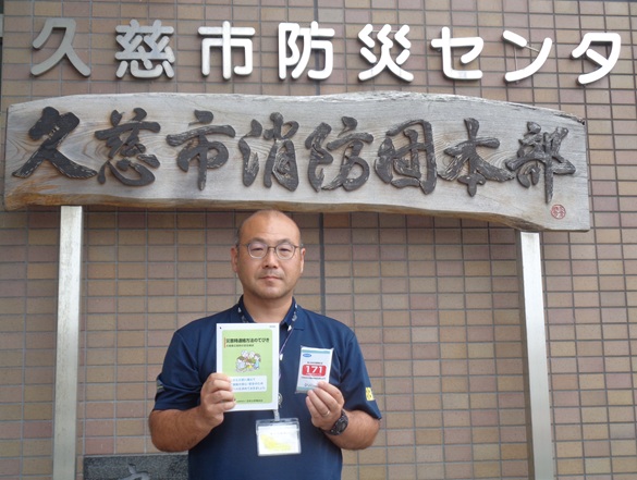 久慈市防災危機管理様へ「災害時連絡方法のてびき」贈呈 2025/10/06 2025年 東北 災害用伝言ダイヤル171等周知活動レポート 令和7年10月6日(月)、岩手支部では久慈市防災危機管理課様へ「災害時連絡方法のてびき」と「171ポケットティッシュ」を贈呈致しました。久慈市は岩手県北東部に位置し太平洋に面した「北限の海女」の町です。久慈市では地震・津波から「犠牲者ゼロ」を目指し、町内会や消防団との意見交換に基づいて津波避難対策に取り組んでいます。贈呈式に御出席頂いた工藤防災センター所長からは「昨今は大雨により川が氾濫することもあり、津波だけの警戒ではなくなっている。ありがたく活用します。」とお礼の言葉を頂きました。