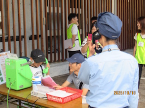 参加者は体育館に集合後、校区内に行方不明者を配置して,グループごとに見守り隊が随行して探索活動を実施しました。行方不明者を発見した場合は声掛けして不明者かどうかの確認後、体育館に設置した仮の交番に誘導をしていました。今後も疑似通報体験により公衆電話教室を開催して、周知啓発活動を実施していきます。