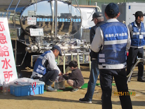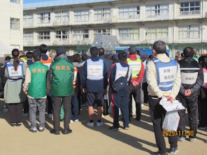 徳島支部では、11月30日(日)徳島市立城東小学校で開催された「令和7年度徳島市民総合防災訓練(住吉・城東地区)」に参加しました。この訓練は、市民が主役となった市民参加型総合防災訓練で今後高い確率で発生することが想定されている南海トラフ巨大地震や直下型地震等の大規模災害に備え関係機関が参加し実施されました。訓練当日の9時頃、南海トラフ沿いを震源とする強い地震が発生し、徳島市は最大震度7の激しい揺れに襲われ、地域住民が指定避難場所の城東小学校へ避難をした想定です。住吉・城東コミュニティ協会会長、徳島市遠藤市長の挨拶のあと、各グループごとに実務訓練がスタートしました。