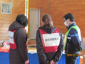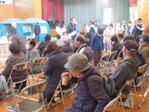 徳島支部では、1月18日(日)徳島県名西郡石井町の高川原小学校体育館で開催した「石井町防災訓練(使ってみよう!食べてみよう!寝てみよう!)」に参加しました。当日は、お天気にも恵まれ、多くの家族連れが来場されて体験重視の防災訓練を通して災害への備えに関心を向けていました。訓練開始は、9時に南海トラフ地震が発生して町内に大きな被害があったと想定し、徒歩で会場の指定避難所まで移動する流れです。