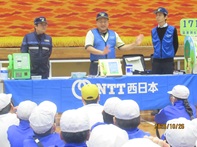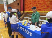 愛媛支部では、10月26日(日)新居浜市立金栄小学校で行われた金栄校区防災訓練に参加しました。この防災訓練は、地域住民の防災意識の向上を目的に毎年実施されており、今回も自主防災会よりNTTに参加依頼があり、NTTと連携・協力して参加させていただきました。
