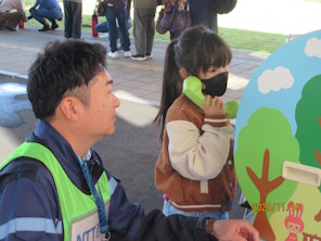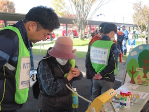 徳島支部では、11月16日(日)阿波市役所・アエルワホールにおいて「阿波市防災フェスタ2025」へ参加しました。当日は、お天気にも恵まれ、多くの家族連れが来場されて防災を楽しく学ぼうをテーマにイベントを通して災害への備えに関心を向けていました。訓練開始は、陸上自衛隊音楽隊コンサートの後、各コーナで建設機械操作体験、降雨・放水体験・水消火器体験等を実施して親子で楽しめるイベントを実施していました。NTTグループのブースにおいて、NTT西日本徳島支店と連携をして もしものために体験しようと「災害用伝言ダイヤルの体験コーナーを開設し、来場された多数の方が訪れ災害時の安否確認の使い方の啓発活動を実施しました。近年、大規模な自然災害が発生していることもあり、参加者の方々も防災意識が高まっているようで、今日の体験を家族や周辺の方と共有していきたいとのお話を伺いました。171をかけるのは初めての方がほとんどで、その使いかたや具体的な伝言内容について、パンフレット等で確認を行いながら実施しました。当日は、171サービスが提供されていたため自宅等で体験していただけるよう説明をしました。