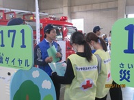 展示コーナーでは、NTT西日本香川支店のブースに災害用伝言ダイヤル171の体験機を設置し、訓練関係者や地域住民の方々に体験していただき、災害時の連絡方法の周知啓発に取り組みました。