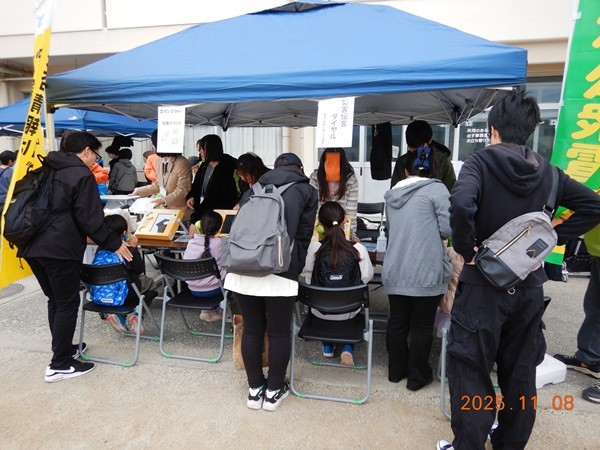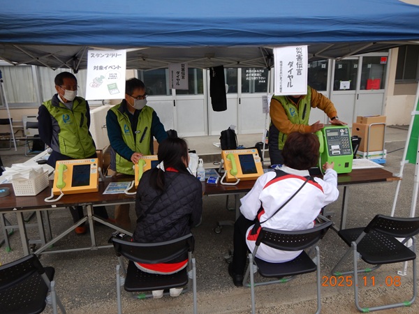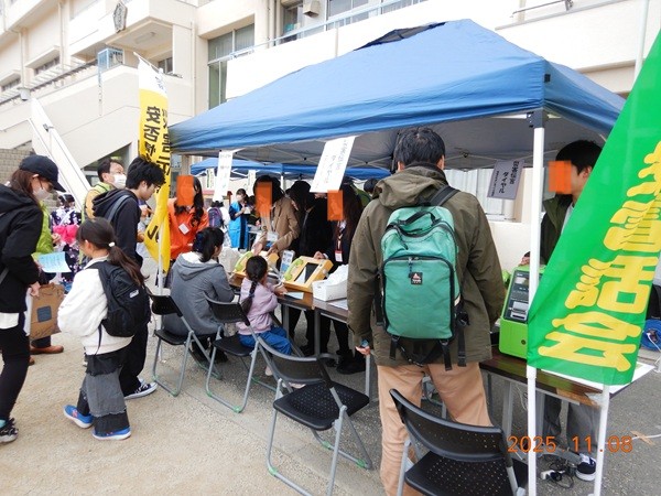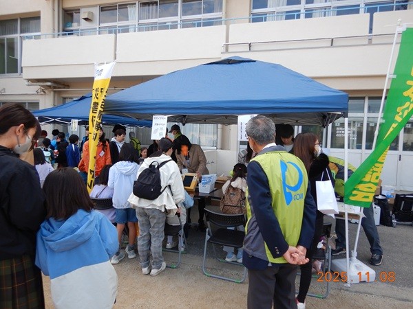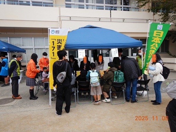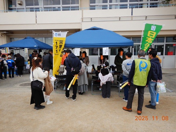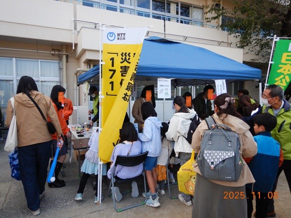 埼玉支部では、11月8日(土)に、川越市の新宿小学校で開催された「地域ふれあいまつり」にて公衆電話と災害用伝言ダイヤル171の体験教室を実施しました。今回は川越市の自治会連合会第十一支会様からお声掛けをいただき実現したものです。当日は、埼玉支部長と事務局3名に加えボランティアの高校生6名の協力のもと、公衆電話のデモ機と171の体験機、171の実環境接続用スマートフォンを用意して来場の皆さんに体験を行っていただきました。天候にも恵まれて、親子ずれを中心に大勢の方々に訪れていただきました。171は名前は知っていても使ったことがない方が多くとても関心を持って体験していただくことができました。また、子供たちは始めて触れる公衆電話機に興味津々の様子でした。当日は、NTT東日本の協力により171の実環境への接続が可能となっていたことから、171のチラシ、ポケットマニュアル等を配布しながら、是非今日ご家庭でも体験していただくようご案内しました。